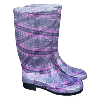 Жіночі гумові чоботи з принтом у сіро-рожеву клітинку — стильн... Детальніше