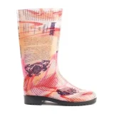 Жіночі гумові чоботи з газетним принтом у рожевих тонах — яскр... Детальніше