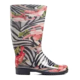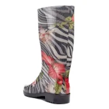 Жіночі гумові чоботи з принтом рожевих квітів на фоні зебрових... Детальніше