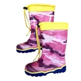 Чоботи гумові дитячі камуфляж рожевий з затяжк...