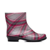 Жіночі гумові чоботи з принтом у сіро-червону клітинку — ефект... Детальніше