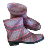 Чоботи гумові жіночі клітинка сіро-рожеві