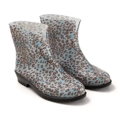 Жіночі гумові чоботи з блакитним леопардовим принтом — стильни... Детальніше