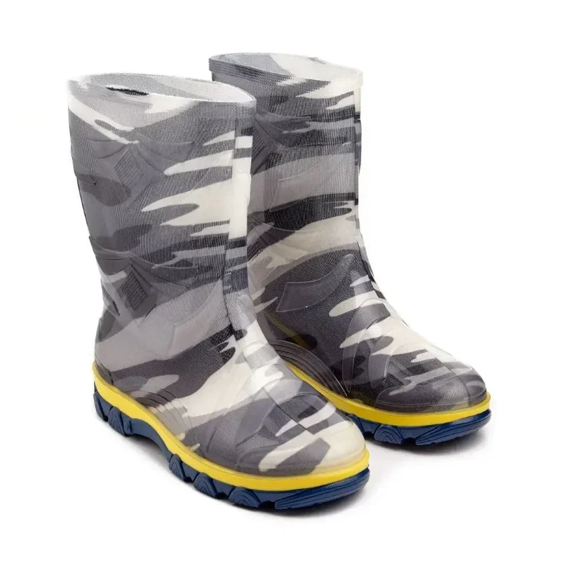 Дитячі гумові чоботи Літма з сірим камуфляжним принтом — стильний і практичний вибір для хлопчиків. Завдяки суцільнолитій конструкції з ПВХ без фталатів чоботи водонепроникні, довговічні та безпечні для здоров’я. М’яка підкладка з поліестеру з еластоміром додає комфорту, а протиковзка жовто-синя підошва робить модель зручною для щоденного носіння.