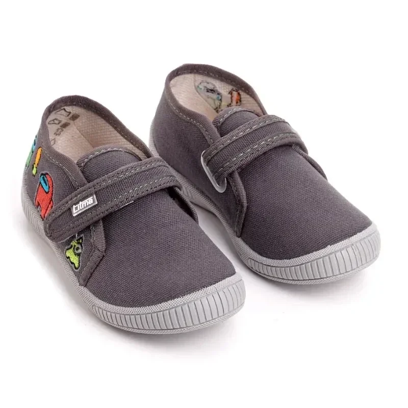 Дитячі капці Samy «Амангас» 👾 у сірому кольорі з яскравими нашивками — стильне та практичне взуття для дому або садочка. Верх і підкладка з натуральної бавовни добре дихають і не викликають подразнень. Устілка з натуральної шкіри додає комфорту, а гнучка підошва зі спіненого ПВХ не ковзає й забезпечує безпеку. Липучка дозволяє легко взуватися самостійно. Вироблено в Україні.