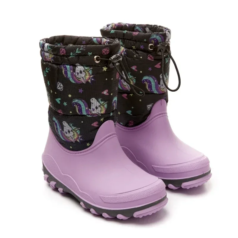 Зимові дитячі чоботи Оскар Єдиноріг — теплі, зручні та яскраві. Верх оздоблений принтом з єдинорогами, а лиття галоша з ТЕП забезпечує водонепроникність і морозостійкість до -30°C. Підкладка з додаванням вовни дарує тепло, а шнурівка-стяжка захищає від потрапляння снігу. Легка та рельєфна підошва робить ходьбу зручною і безпечною.