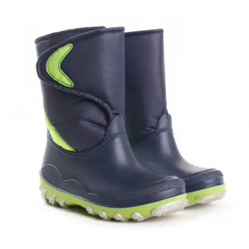 Дитячі зимові чоботи Оскар синьо-зелені — надійний захист від холоду та вологи. Галоша з ТЕП витримує морози до -30°C, забезпечуючи водонепроникність і довговічність. Усередині — утеплювач з додаванням вовни для збереження тепла. Липучка на халяві дозволяє зручно фіксувати взуття, а рельєфна протиковзна підошва гарантує безпеку на снігу та льоду.