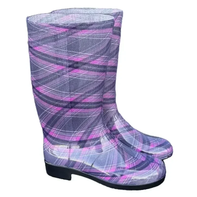 Жіночі гумові чоботи з принтом у сіро-рожеву клітинку — стильний та практичний вибір для дощових днів. Виготовлені з безпечного ПВХ без фталатів методом суцільнолиття, вони водонепроникні та довговічні. М’яка підкладка з поліестеру з еластоміром забезпечує комфорт, а рельєфна підошва підвищує стійкість на слизьких поверхнях.