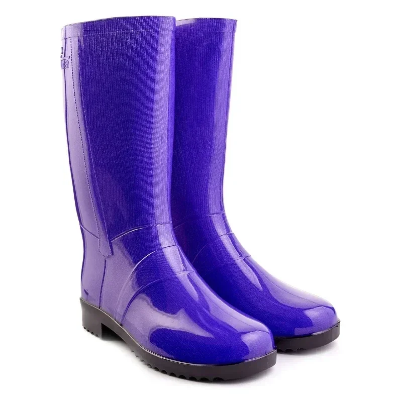 Жіночі гумові чоботи Neon фіолетові — яскравий акцент у вашому гардеробі та надійний захист у дощову погоду. Виготовлені з безпечного ПВХ без фталатів методом суцільнолиття, вони повністю водонепроникні та довговічні. М’яка підкладка з поліестеру з еластоміром дарує комфорт, а глибокий протектор підошви забезпечує стійкість на слизьких поверхнях.