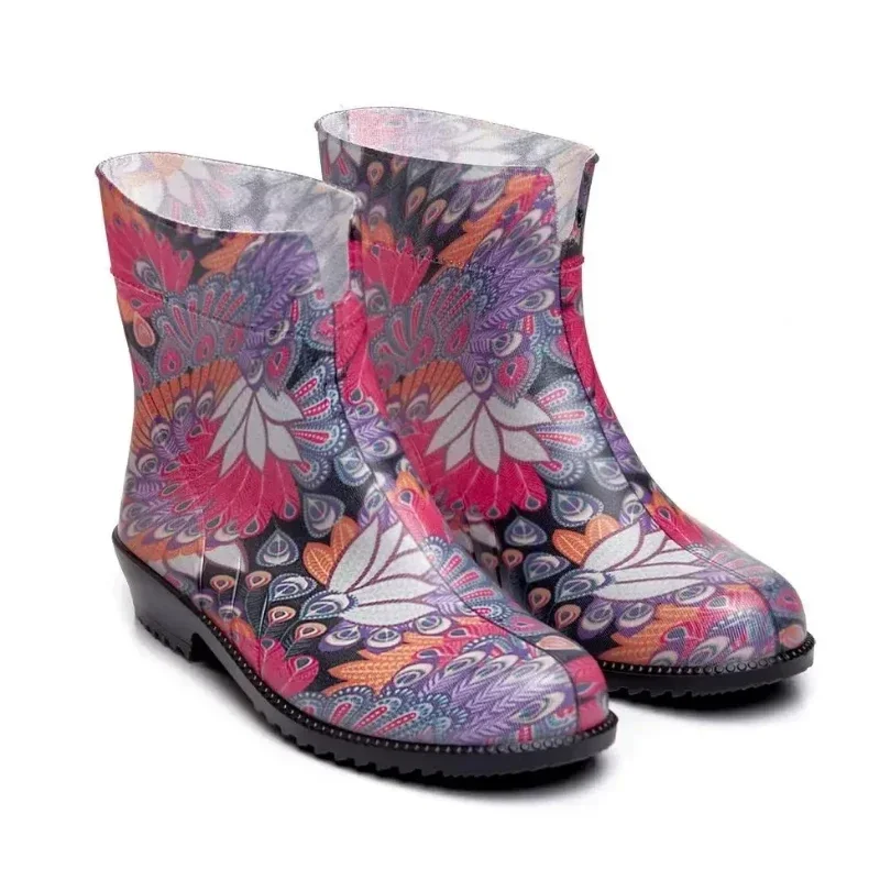 Жіночі гумові чоботи Літма з принтом “крило павича” — яскравий вибір для стильних жінок у дощову погоду. Виготовлені з безпечного ПВХ без фталатів, мають суцільнолиту конструкцію, яка гарантує повну водонепроникність. Усередині — м’яка підкладка з поліестеру та еластомеру для зручності. Рельєфна підошва додає стійкості на мокрих поверхнях.