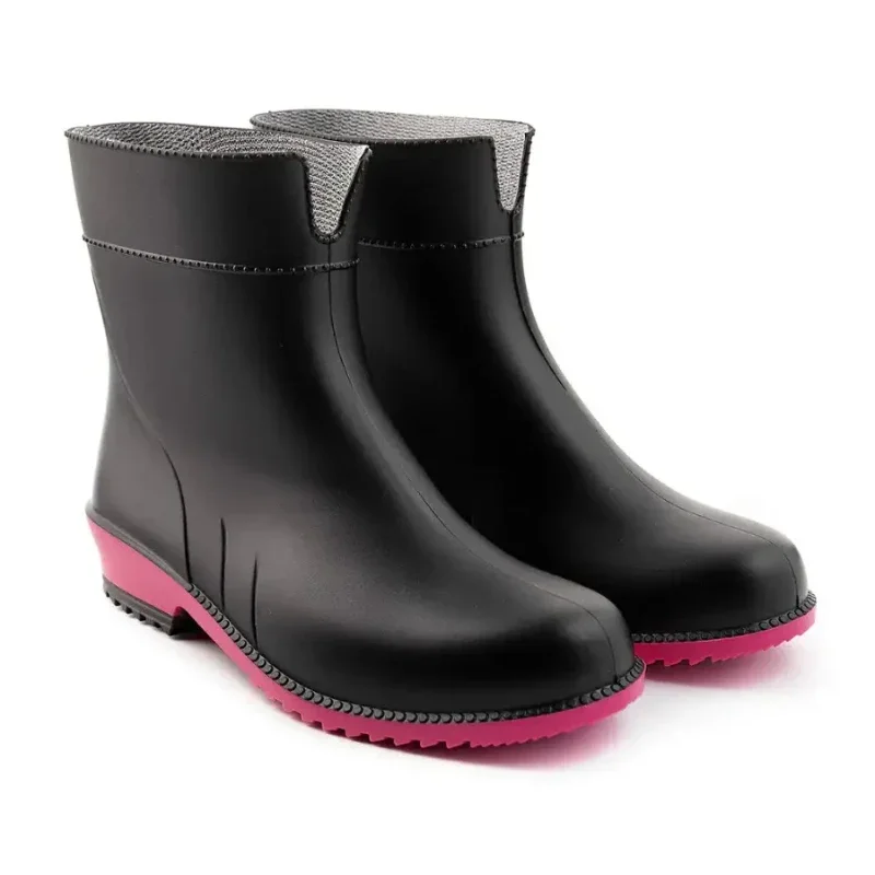 Жіночі гумові чоботи Літма чорно-рожеві — легкі, стильні та практичні для дощової погоди. Виготовлені методом суцільнолиття з безпечного ПВХ без фталатів, вони гарантують 100% водонепроникність та зносостійкість. Усередині — м’яка підкладка з поліестеру та еластомеру. Яскрава підошва з протектором додає впевненості на мокрих поверхнях.