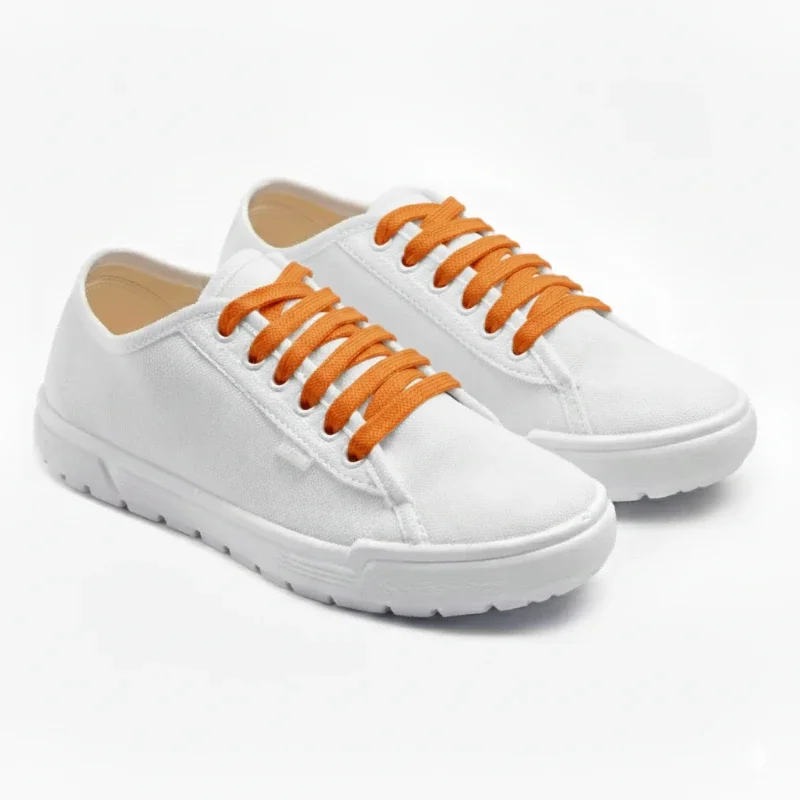 Кеди білі Лорета з помаранчевими шнурками — стильне поєднання класики та яскравого акценту. Верх, підкладка та устілка виконані зі 100% натуральної бавовни, що забезпечує комфорт і циркуляцію повітря. Підошва зі спіненого поліуретану, виготовлена строчно-литтєвим методом, гарантує легкість і гнучкість. Помаранчеві шнурки додають взуттю енергії й позитивного настрою — чудовий вибір для весняно-літнього гардеробу.