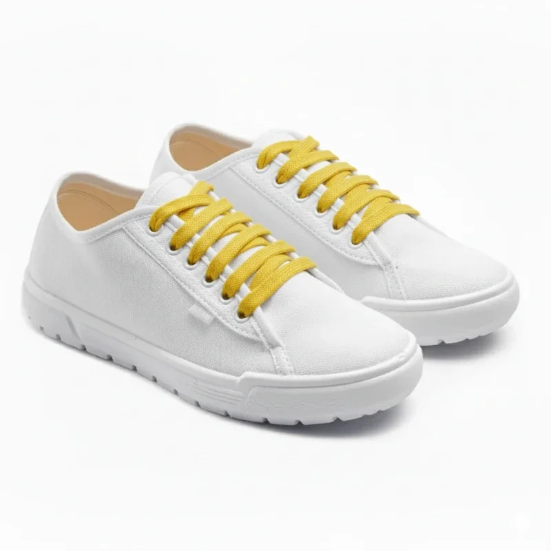 Кеди білі Лорета з жовтими шнурками — це стильне та зручне літнє взуття для тих, хто цінує комфорт і яскраві акценти. Верх, підкладка й устілка виготовлені зі 100% натуральної бавовни, що забезпечує дихаючість і приємні відчуття навіть у спеку. Легка підошва зі спіненого поліуретану, створена строчно-литтєвим методом, гарантує м’якість і гнучкість при ходьбі.