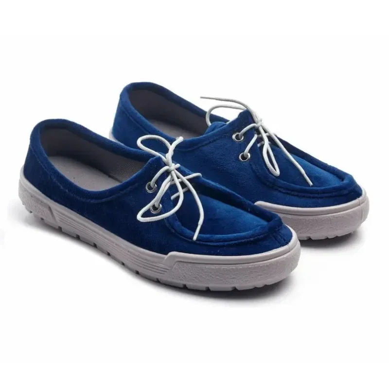 Жіночі мокасини MELANIA у синьому кольорі — стильне та комфортне взуття для літа. Верх виконаний із м’якої ворсованої тканини з ефектом замші, всередині — натуральна бавовняна підкладка для вентиляції. Легка підошва зі спіненого ПВХ, виготовлена методом литтєвого кріплення, забезпечує амортизацію та зручність щодня.
