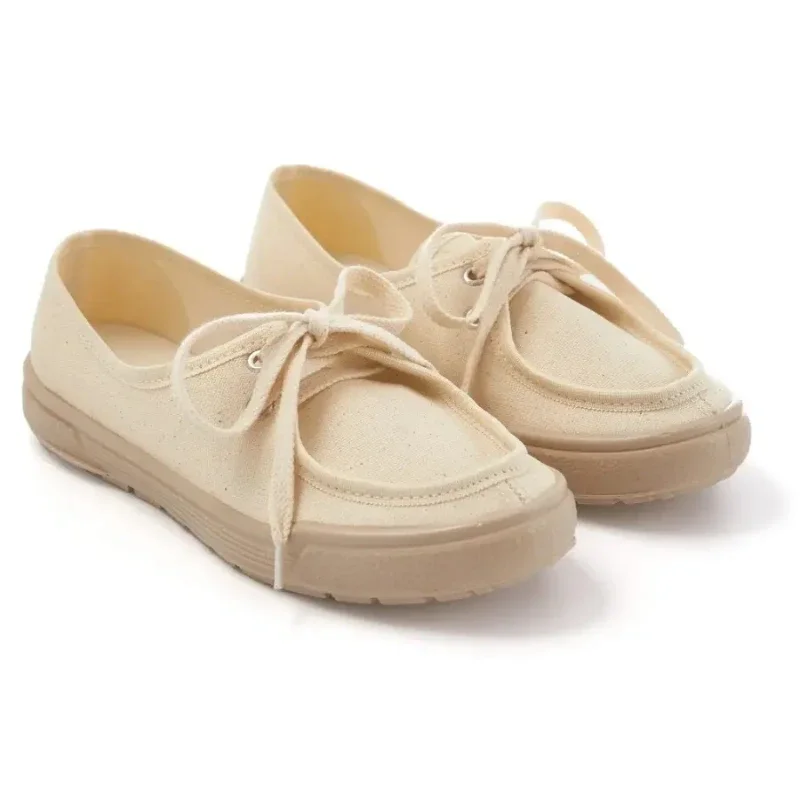 Жіночі мокасини Меланія у бежевому кольорі — це легке та комфортне взуття для літнього сезону. Верх виконаний зі 100% натуральної бавовни, яка дарує відчуття свіжості та дозволяє шкірі дихати. М’яка форма з круглим носком і зручна шнурівка забезпечують комфортну посадку. Лита підошва з ПВХ робить взуття гнучким та практичним у щоденному використанні.