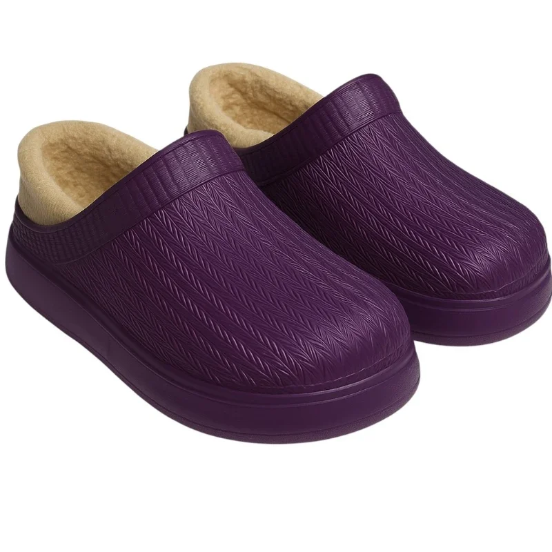 Жіночі утеплені сабо Dago Style у темно-фіолетовому кольорі — поєднання практичності та стилю. Виготовлені з легкого та гіпоалергенного EVA, вони мають м’яке хутряне утеплення, що забезпечує тепло та комфорт. Еластичний задній бортик гарантує зручну фіксацію, а підошва з амортизацією додає стійкості й комфорту під час носіння.