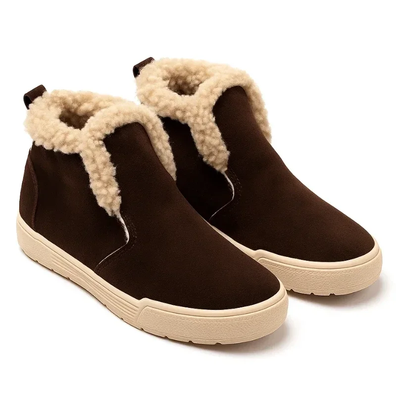 Жіночі черевики Доменіка Теді у коричневому кольорі поєднують тепло, зручність і сучасний стиль. Ворсована тканина під замш надає взуттю елегантності, а хутро з вмістом 30% натуральної вовни надійно зберігає тепло навіть у мороз. Легка та міцна підошва зі спіненого поліуретану забезпечує комфорт при щоденному носінні. Ідеальний вибір для зими.