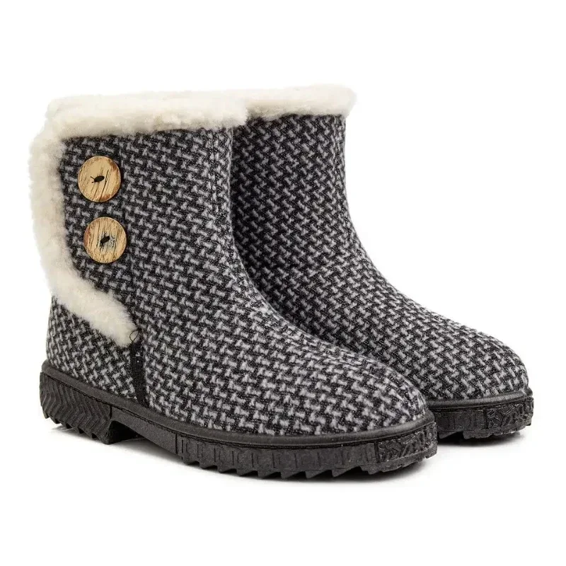 Жіночі бурки Грета у сірому кольорі — теплі та зручні для зими. Верх із текстилю (акрил, поліестер, бавовна) робить їх легкими й міцними. Усередині м’яке хутро з вмістом вовни (30%) дарує тепло та комфорт. Спінена ПВХ-підошва, виготовлена строчно-литтєвим методом, забезпечує легкість і довговічність. Декоративні ґудзики та липучка додають зручності та стилю.