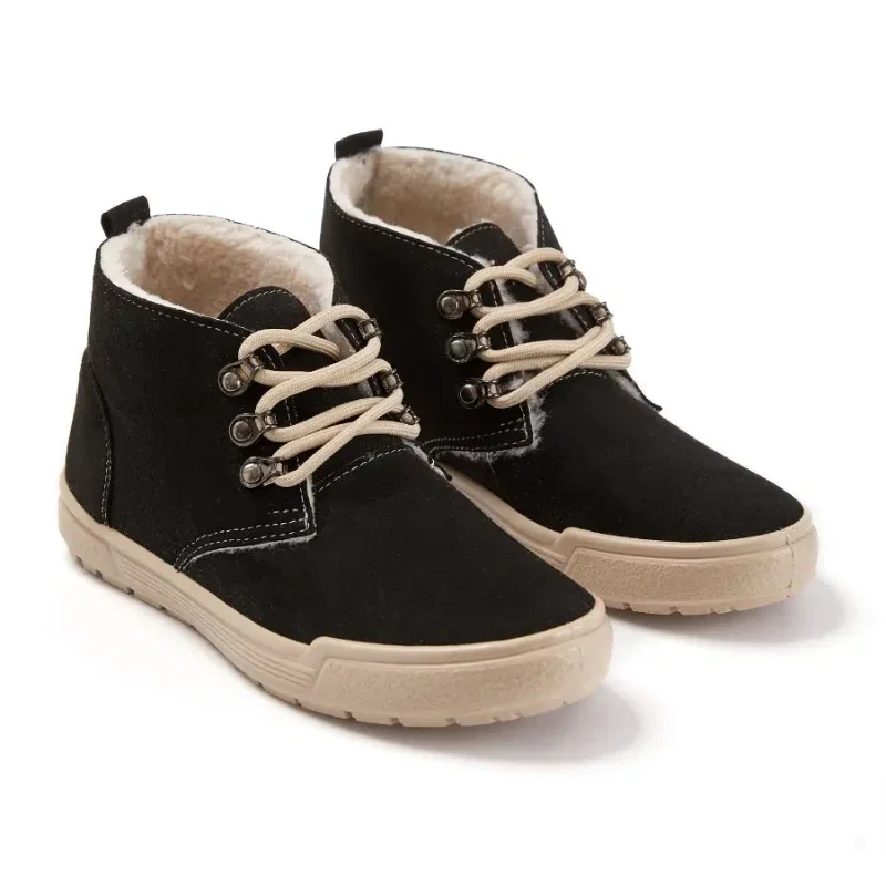 Жіночі утеплені кеди Літма чорного кольору створені для комфорту у прохолодний сезон. Верх виконаний з ворсованої тканини під замшу, усередині тепла підкладка з хутра з додаванням вовни. Легка поліуретанова підошва забезпечує м’яку ходу та надійне зчеплення з поверхнею. Практичний вибір для щоденного носіння восени та взимку.