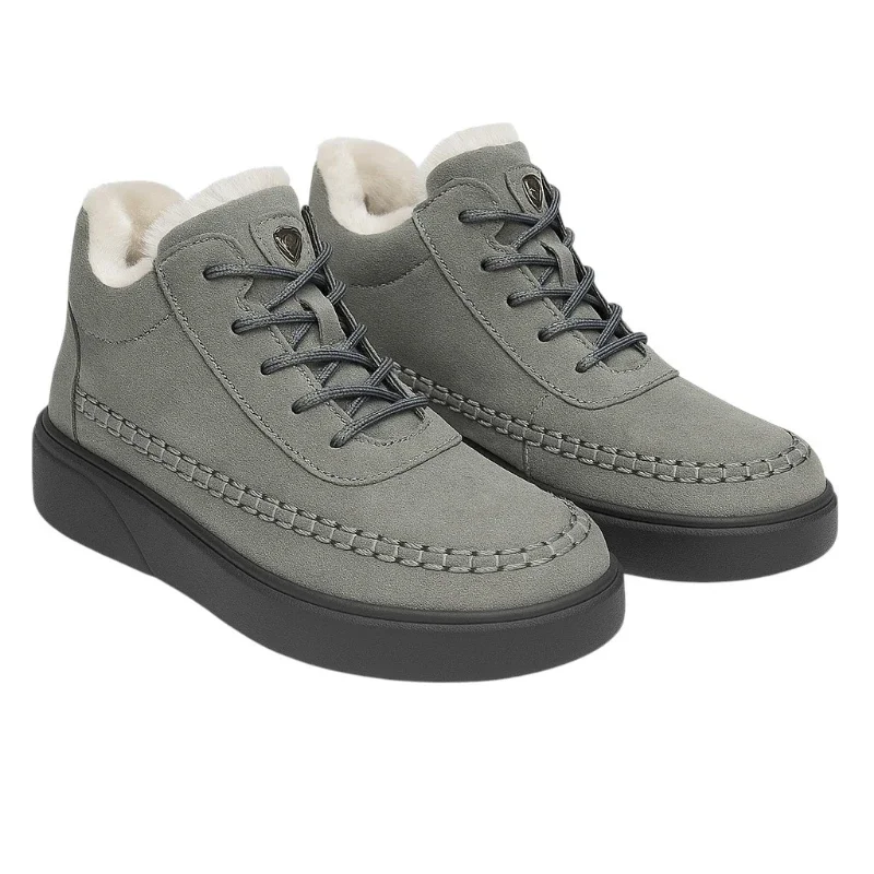 Жіночі черевики Осло у сірому кольорі — стильний та комфортний вибір на щодень. Верх із м’якої штучної замші надає елегантності, а тепла хутряна підкладка зберігає тепло у прохолодну погоду. Легка ПВХ-підошва висотою 2,5–3,5 см забезпечує зручність і стабільність. Застібаються на шнурівку для надійної фіксації.