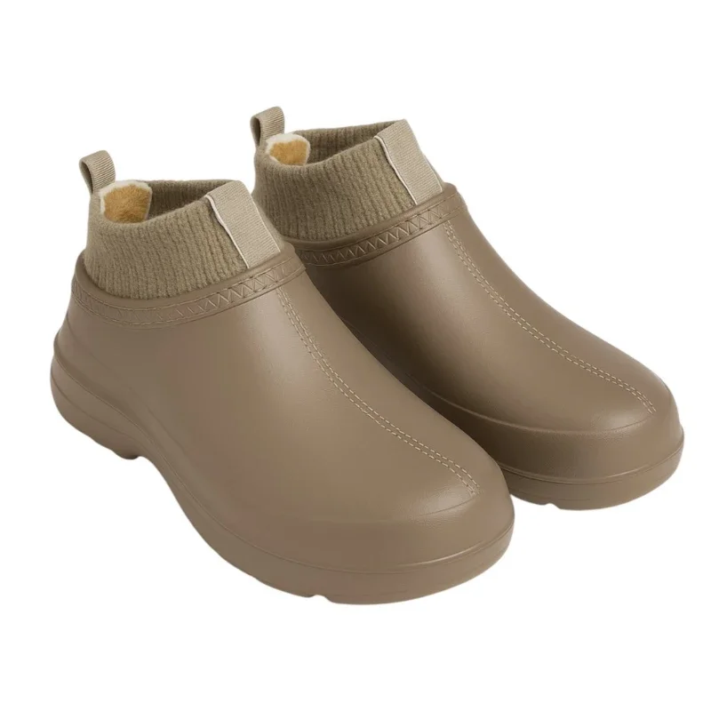 Жіночі теплі сабо Даго в бежевому кольорі — новинка цього сезону. Виконані з цільнолитого матеріалу EVA, вони легкі, міцні та зручні у щоденному використанні. Тепла підкладка зі штучного хутра й високий текстильний манжет дарують комфорт і захист у холодну погоду. Ідеальний вибір для дому, роботи чи прогулянок на свіжому повітрі.